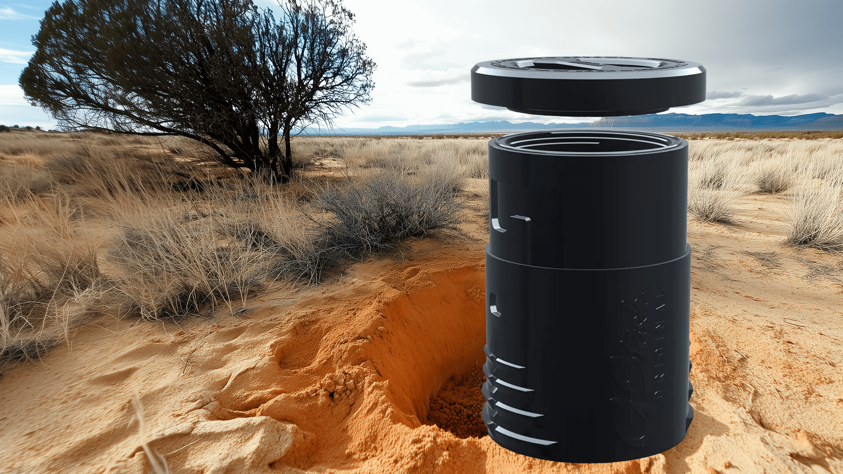 Once buried, simply uncover the lid to access the handle and easily lift the G-Stash Storage Capsule in and out of the ground for easy access or fast removal. After the initial burial, no more digging is necessary except to expose the lid.